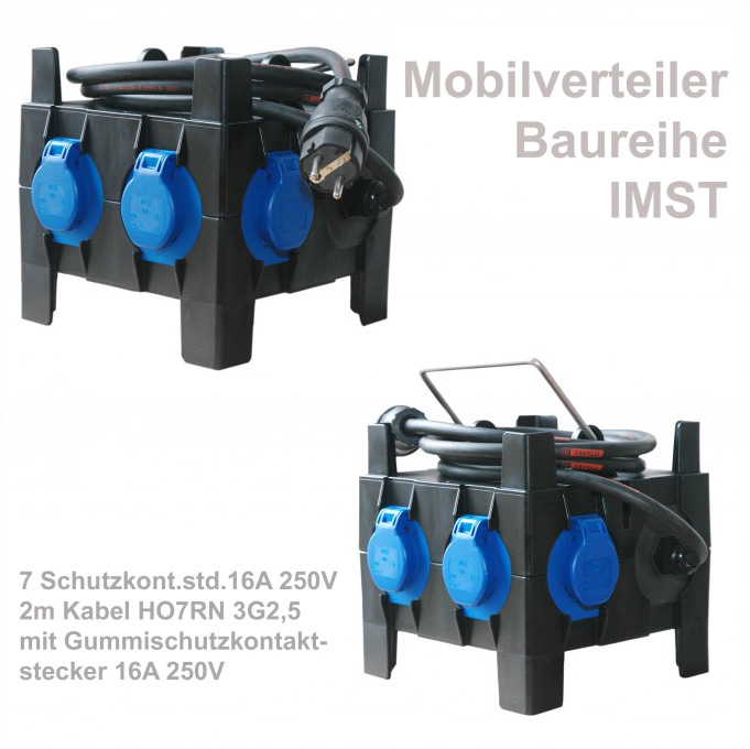 - Verwendbar z.B. als Kraft- bzw. Lichtstromverteiler auf Baustellen